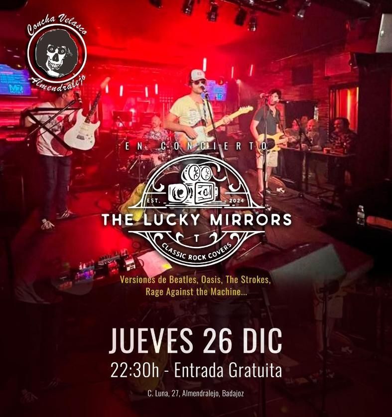 The Lucky Mirrors llegan con su directo de rock clásico lleno de energía. Esta banda especializada en versiones interpreta grandes himnos de la historia del rock, con un repertorio que incluye temas de grupos legendarios como The Beatles, Oasis, The Strokes o Rage Against the Machine (según las influencias y selección habitual de este estilo).